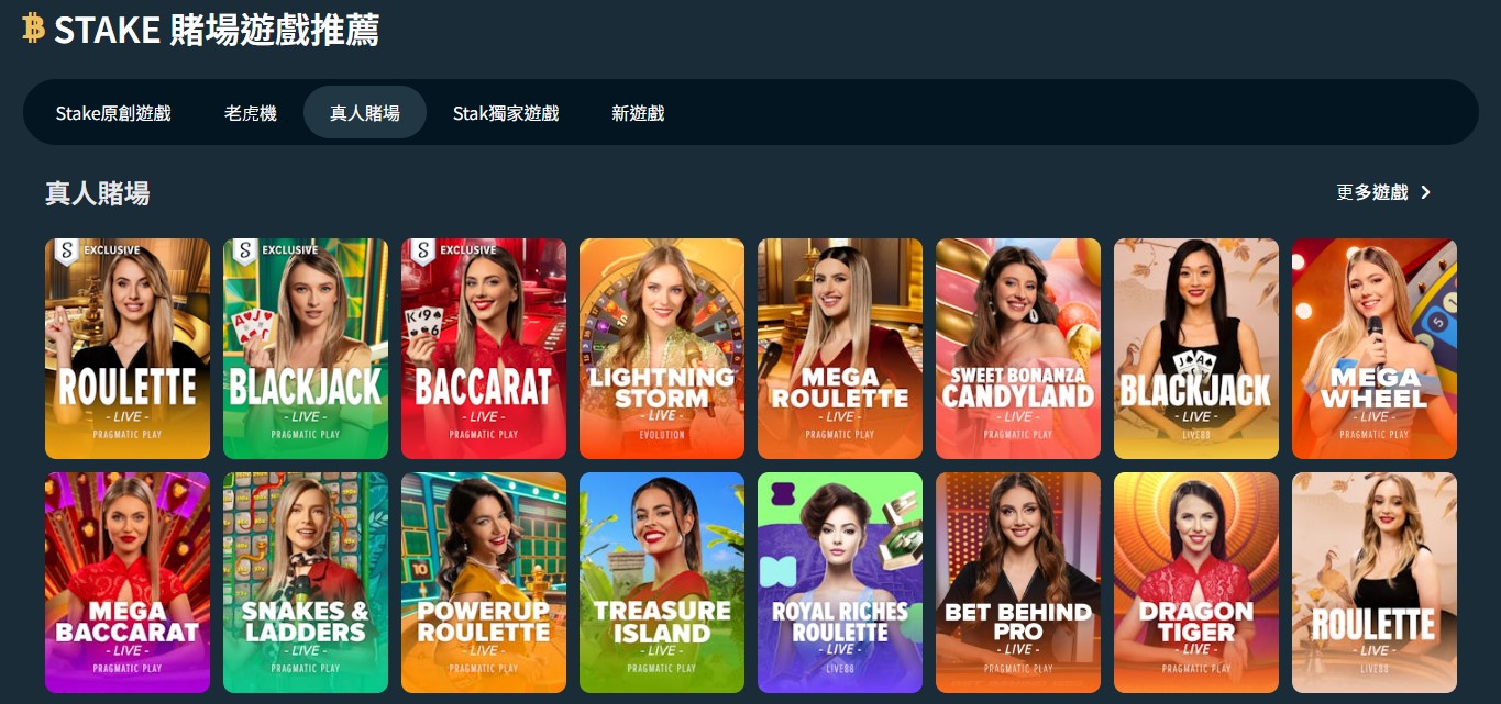 對於喜愛真實賭場體驗的玩家,Stake 的真人賭場無疑是一大亮點。玩家可以在現場實況的賭桌前,與真人荷官進行互動,這帶來的賭博氛圍與線上遊戲有著天壤之別。無論是經典的 21點、輪盤、還是 德州撲克,這裡的真人賭場遊戲都能滿足你對真實賭博體驗的渴望。